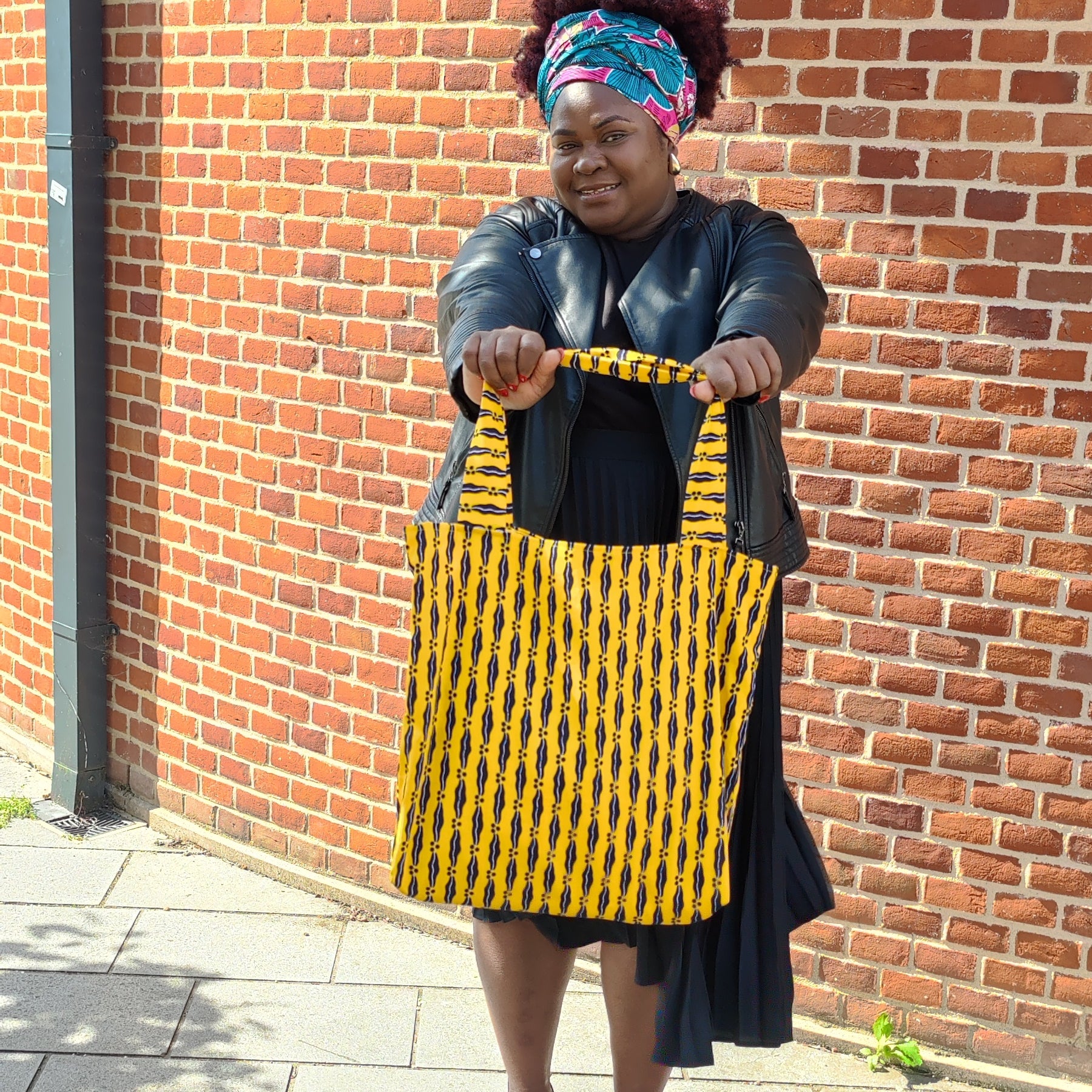 Discover the perfect combination of style, functionality and sustainability with our Ecobag made from authentic African fabric. On the outside, the vibrant African print adds charm and exclusivity, while the interior lined with 100% cotton fabric provides durability and a soft touch.